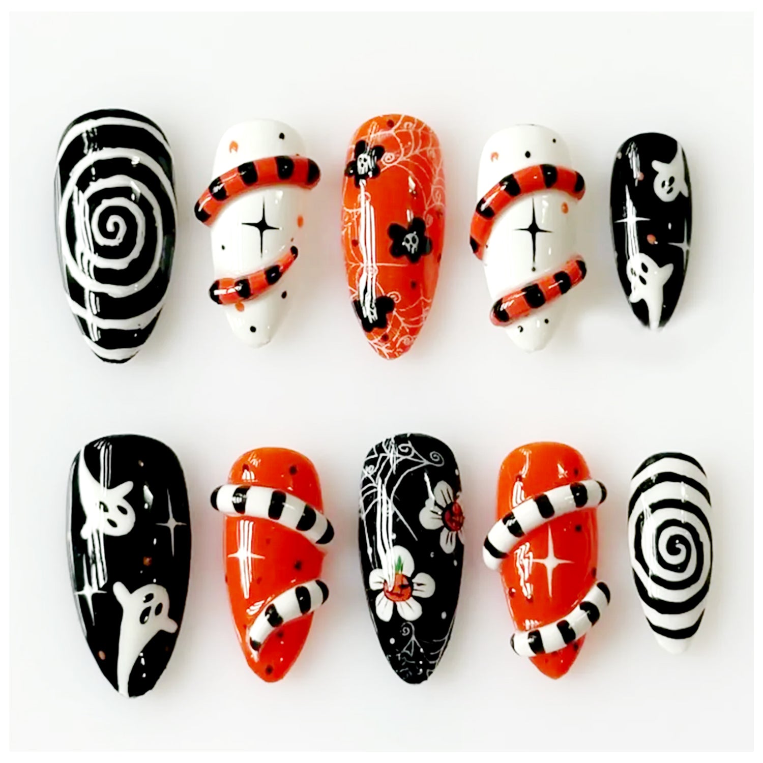 Our press-on nail sizes are listed from Thumb – Index – Middle – Ring – Pinky (left to right). Each set is crafted for a seamless, natural fit. Please refer to our sizing chart to find the best match for your nail beds.
